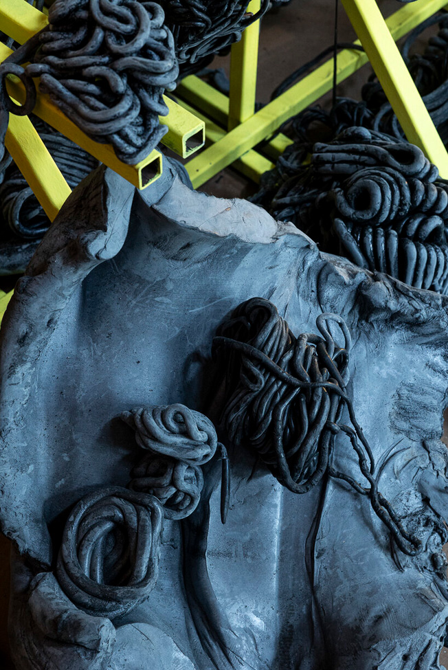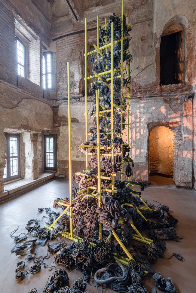 Designboom_ Buşra Tunç presents Leftover, her solo exhibition at Fener House in Istanbul, which explores industrial remnants, atmospheric elements of workshops, and production waste through the lens of industrial archaeology. The exhibition stems from Tunç’s extensive research within a medium-scale complex focusing on serial production. She questions the fate of these leftovers, their reentry into production cycles, and how they form their own economies and sociologies. The accumulated powder coatings, metal shavings, oxidation, and scraps at these production sites resemble geological formations, indicating a continuous process battling decay and entropy. Leftover examines the unintended aesthetics of materials that failed to become products due to production errors, unforeseen possibilities, and associated losses.