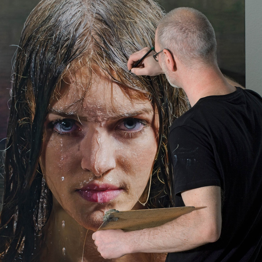 At first glance, his artworks appear to be glamorous magazine photo shoots, but they go far beyond that. The poses of the models may look traditional, but you have to pay attention to every detail. By producing a meticulous rendering, the artist seeks to reveal in every detail the small imperfections that reveal the inner truth of his models and give insight into their deeply human stories.