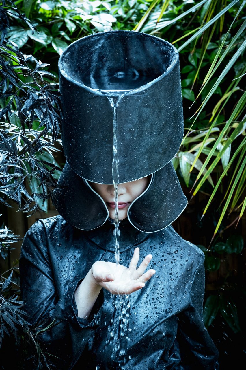 Dezeen_ Designer Mijoda Dajomi has created the Daughters of Rain headwear collection, which can harvest rainwater in anticipation of future water shortages.