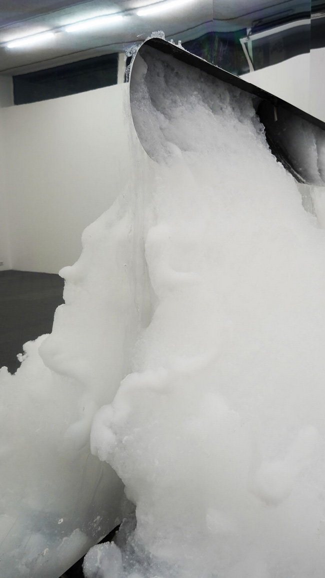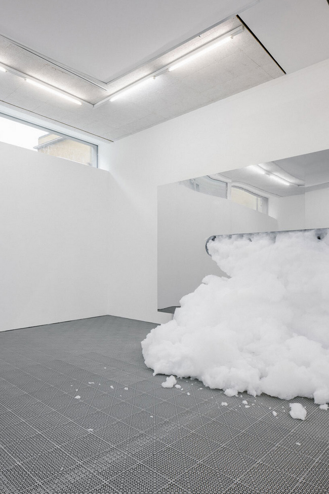Designboom_ At the 2024 Berlin Art Week, Harry Nuriev unveils his debut solo exhibition, The Foam Room, at the DITTRICH & SCHLECHTRIEM gallery. Running until November 16th, the show features a mirrored installation that continuously produces and releases thick white foam, gradually filling the underground space. The interplay between the reflective surfaces and the growing foam creates an immersive environment, encouraging visitors to engage, reflect, and fully experience the evolving atmosphere.