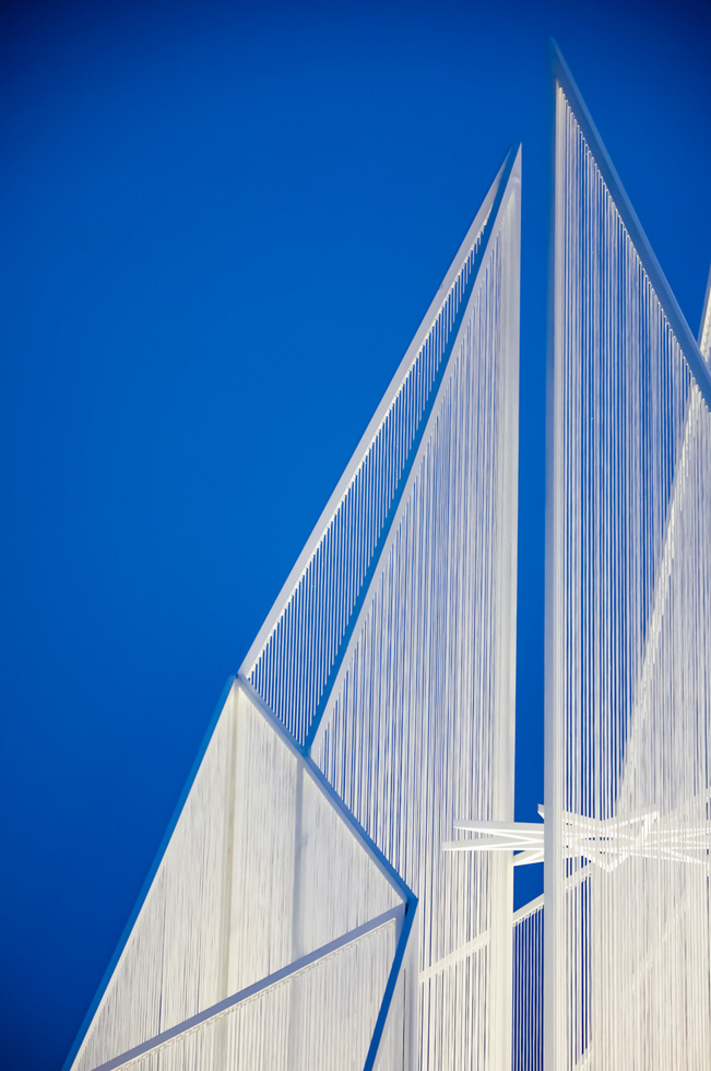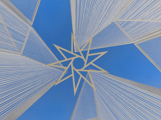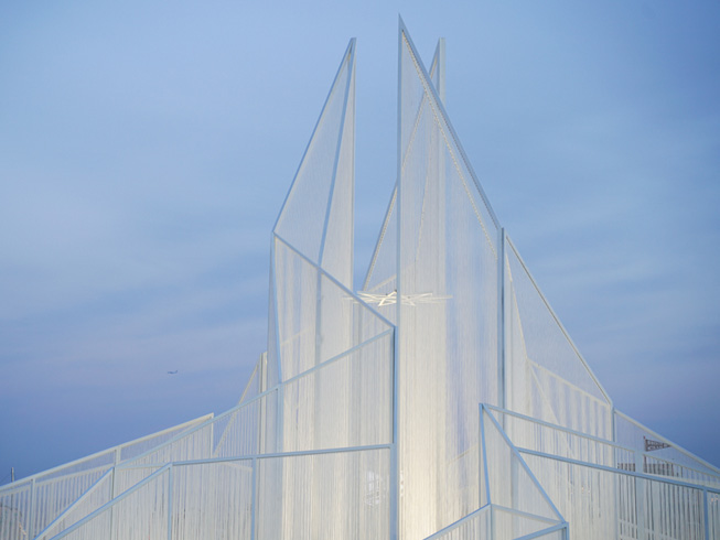 The installation responds to the physical and cultural context of Kalun Lake in winter. The design explores water’s transformative states—ice, snow, and frost—and reflects on their ephemeral nature. The structure captures the sharp geometry of ice crystals and the steep contours of snow-covered mountains. To achieve this, the design incorporates a translucent texture created through rope weaving, evoking the misty interplay of snow and fog. The public artwork integrates a metal framework to create sharp, defined shapes, complemented by the diffused light produced by the woven ropes. This combination emphasizes contrasts between the solid and the ethereal, connecting the material’s physicality with the natural elements of the frozen lake.