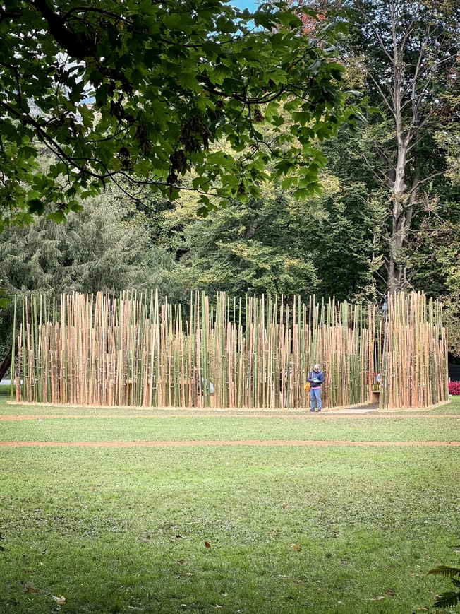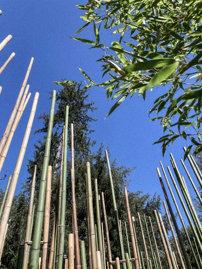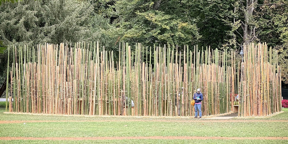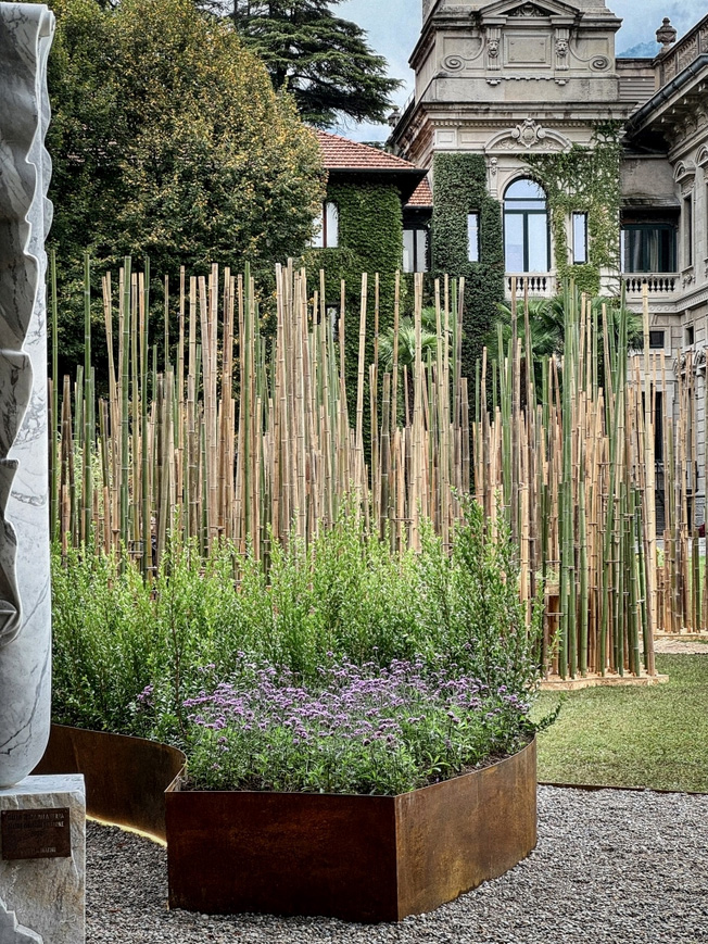 At the Growth and Flowering Station, plants at various stages of growth—from budding to flowering—are showcased. This space offers an opportunity to appreciate the vibrancy and complexity of plant life. The Maturation Station features a fully matured bamboo, encircled by benches that provide visitors with a space to pause and reflect in the tranquil setting of Villa Erba Park. The final stop, the Decomposition Station, illustrates the process of decay and renewal. Visitors can observe the organisms thriving within a decaying bamboo trunk, highlighting the cyclical nature of life and the interconnectedness of all living systems.