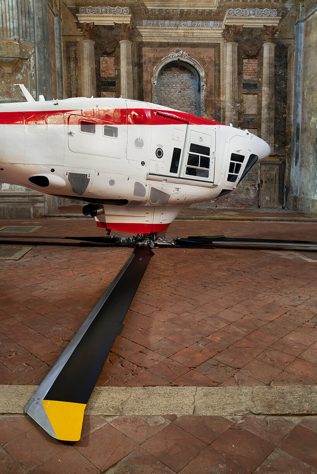 The Italian artist has long experimented with subverting recognizable objects through inversion and displacement. A helicopter upside down follows in the lineage of Pivi’s previous works, including Camion (1997), a lorry flipped onto its side; Untitled (airplane) (1999), a fighter jet turned upside down for the Venice Biennale; and How I Roll (2012), a Piper Seneca rotating mid-air in a Public Art Fund installation in New York. Each piece plays with perception, humor, and scale, prompting a reconsideration of the ordinary.