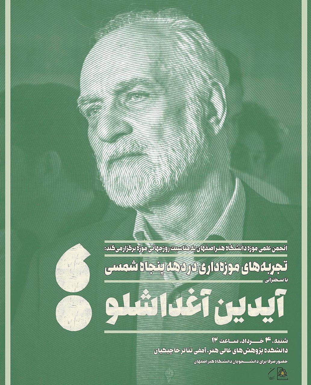 انجمن علمي موزه دانشگاه هنر اصفهان به مناسبت روز جهاني موزه نشست "تجربه‌هاي موزه‌داري در دهه پنجاه شمسي" را شنبه ۴ خردادماه ۱۳۹۸ برگزار مي‌کند.