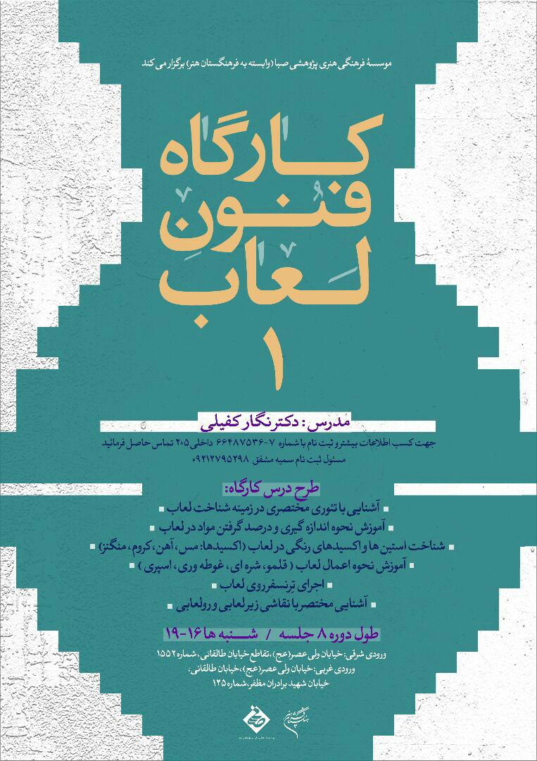 موسسه فرهنگي هنري صبا (وابسته به فرهنگستان هنر)، در ادامه برپايي کارگاههاي تخصصي هنرهاي سنتي و اصيل ايراني، کارگاه «فنون لعاب 1» را برگزار مي کند.