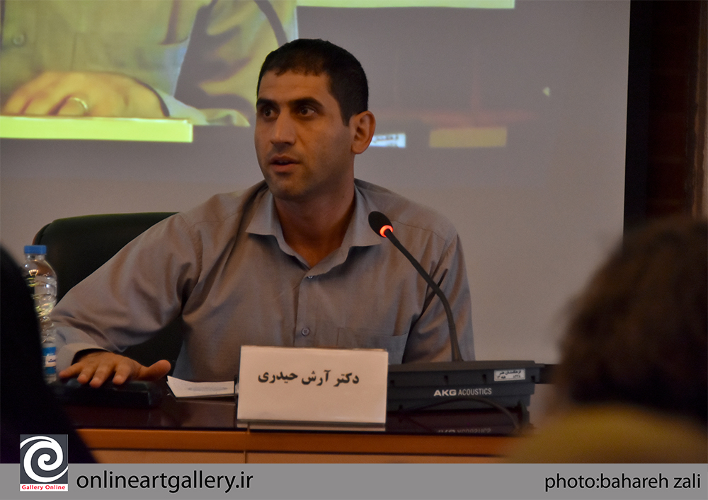 حيدري هنر را در قالب تاريخي اجتماعي وارد کرد و آن را همانند يک مقوله اجتماعي تاريخي مورد بحث قرار داد. وي سپس گفت: اگر هنر اينچنين مطرح شود، بدن- آنجايي که فرد و ديگري مهم مي شوند- به ميان مي آيد و اينجا ماجرا، ماجراي بدن است و فضا، الگوي عمل است و سياست. سياست الگويي است که به آرايش بدن ها مي پردازد.