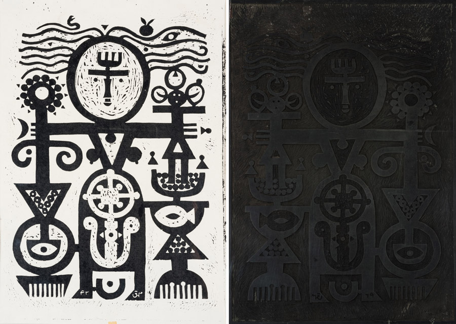 اثر بعدي متعلق به منصور قندريز، دولتهاي، هر لت ۳۶×۵۳ ، در مجموع ۷۲×۵۳ سانتيمتر است، مربوط به سال ۱۳۴۲ که با تکنيک راست: اصل کليشه لينولئوم ، چپ: چاپ لينولئوم روي کاغذ اجرا شده و در نهايت به قيمت 300 ميليون تومان به فروش رفت.
