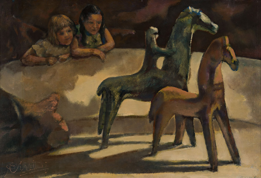 کودکان و اسب هاي سفالي، عنوان اثر جواد حميدي است که به قيمت 120 ميليون تومان خريداري شد.