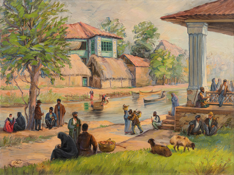 اثر آبرنگ روي مقوا عباس رسام ارژنگي به ابعاد ۴۰×۳۳ سانتيمتر به قيمت 80 ميليون تومان فروخته شد.