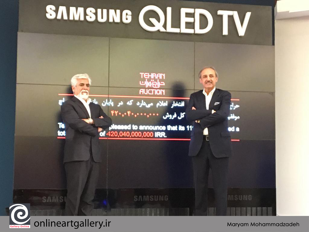 به گزارش گالري آنلاين، در مجموع شش اثر از کيخسرو خوروش، اثر دوم جعفر روحبخش،بهمن نيکو، اثر دوم هوشنگ پزشک نيا، رضا مافي ، اثر دوم محمد احصايي به فروش نرفت. 12 اثر بالاي يک ميليارد تومان فروخته شد. بالاترين اثر متعلق به اثر اول پرويز تناولي با سه ميليارد و دويست تومان فروش بود و پس از وي به ترتيب اثر سوم منير فرمانفرماييان به مبلغ سه ميليارد تومان، اثر اول سهراب سپهري به مبلغ دو ميليارد و دويست ميليون تومان، اثر دوم منير فرمانفرماييان به مبلغ دو ميليارد و صد ميليون تومان ، اثر دوم سهراب سپهري و اثر محمود فرشچيان و اثر حسين زنده رودي هر کدام دو ميليارد تومان، اثر دوم پرويز تناولي و اثر آيدين آغداشلو و اثر اول ژازه تباتبايي هرکدام يک ميليارد و ششصد ميليون تومان، اثر بهجت صدر به قيمت يک ميليارد و پانصد ميليون تومان و اثر مسعود عربشاهي به قيمت يک ميليارد تومان به فروش رفت.