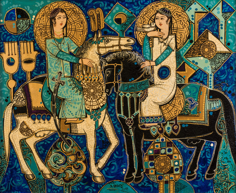 " سواران را چه شد؟" عنوان اثر ناصر اويسي است که تکنيک آن رنگ روغن و ورق طلا روي بوم عنوان شده و به قيمت 280 ميليون تومان فرخته شد.