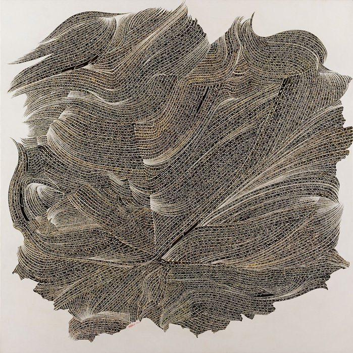 اثر دوم صادق تبريزي با تکنيک ترکيب مواد روي کاغذ چسبانده شده روي بوم و امضاي «S.Tabrizi۹۱» به قيمت 220 ميليون تومان چکش خورد.