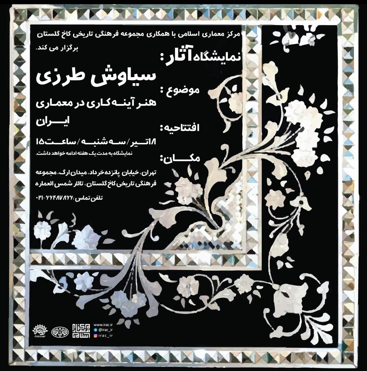 مرکز معماري اسلامي با همکاري مجموعه فرهنگي هنري کاخ گلستان نمايشگاهي از آثار استاد سياوش طرزي با موضوع "هنر آينهکاري در معماري ايران" برگزار مي کنند.
