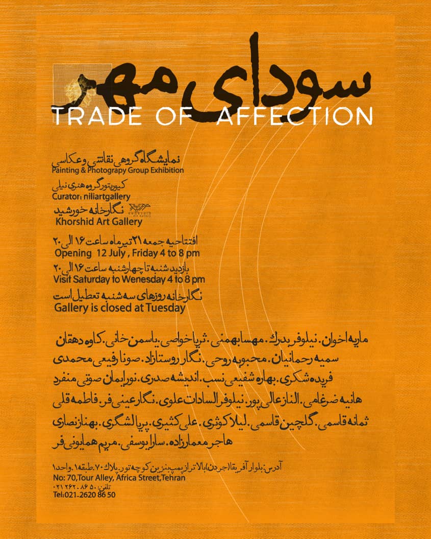 گالري خورشيد ار روز جمعه 21 تيرماه ميزبان نمايشگاه گروهي نقاشي و عکاسي تحت عنوان "سوداي مهر" به کيوريتوري گروه هنري نيلي مي شود.