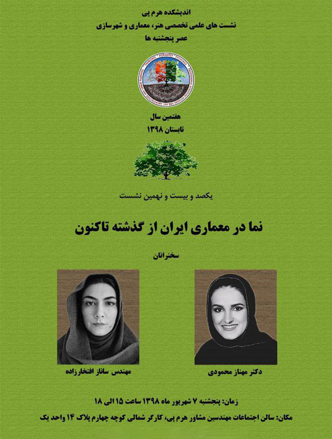 يکصد و بيست و نهمين نشست از سلسله نشست هاي علمي تخصصي هنر، معماري و شهرسازي انديشکده هرم پي با موضوع "نما در معماري ايران از گذشته تا کنون" پنجشنبه ۷ شهريور ماه برگزار مي شود.