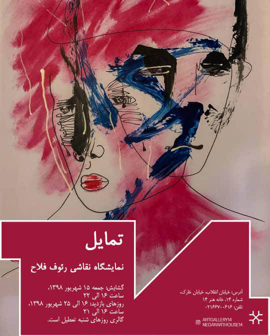 نمايشگاه "تمايل" تا ۲۵ شهريورماه همه روزه بجز شنبه ها از ساعت ۱۶ الي ۲۱ داير خواهد بود و علاقمندان جهت بازديد از آثار مي توانند به نشاني خيابان انقلاب، خيابان خارک، شماره ۱۴ مراجعه نمايند.