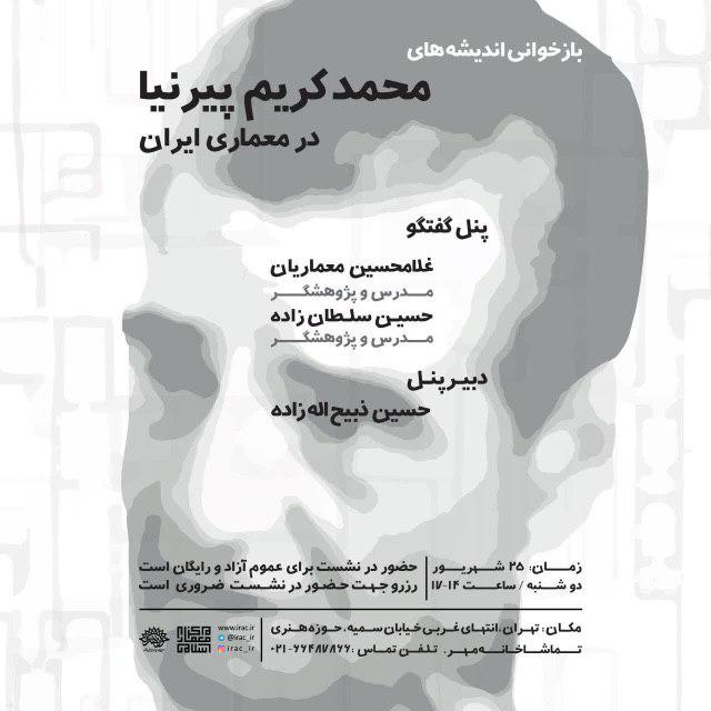 نشست "بازخواني انديشههاي محمدکريم پيرنيا در معماري ايران" روز دوشنبه ۲۵ شهريورماه ۱۳۹۸ برگزار مي شود.