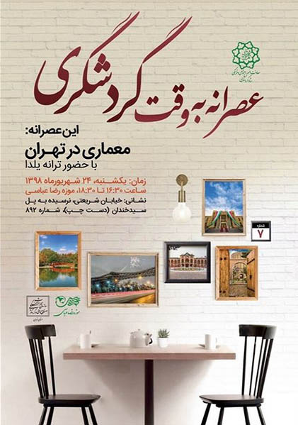 هفتمين "عصرانه به وقت گردشگري" با موضوع "معماري در تهران" يکشنبه ۲۴ شهريور ماه ۱۳۹۸ در موزه رضا عباسي برگزار مي شود.