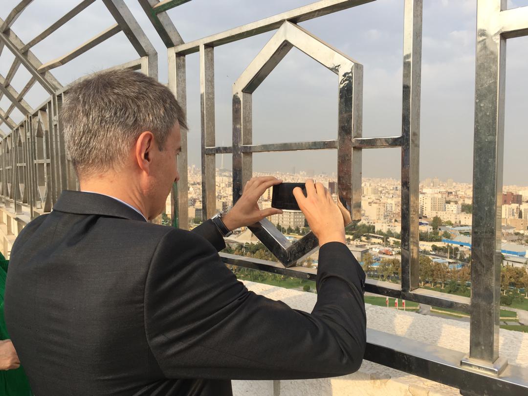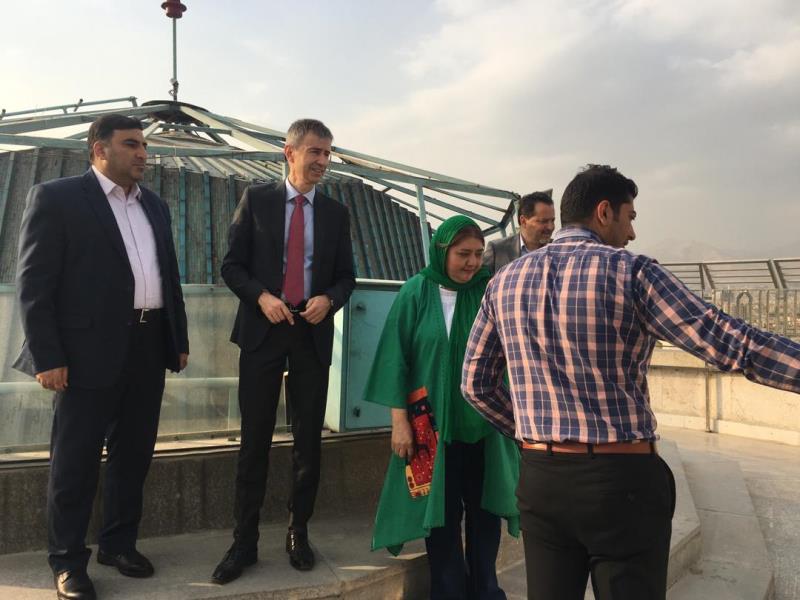 مارکوس لايتنر سفير سوييس در ايران، در حاشيه آيين گشايش نمايشگاه "ايران از دريچه چشمان هما" از برج آزادي بازديد کرد.