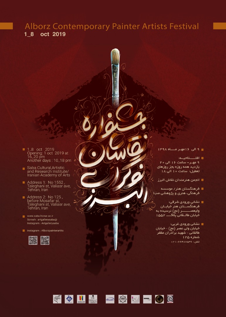 نمايشگاه نقاشان نوگراي البرز از 9 تا 16 مهرماه همه روزه از ساعت 10 تا 18 به نشاني خيابان وليعصر، خيابان طالقاني، خيابان شهيد برادران مظفر، پلاک 125، ميزبان علاقه‌مندان خواهدبود.