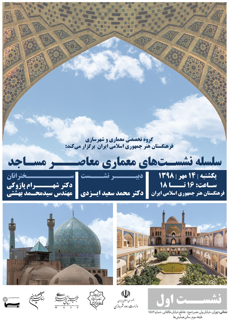 نخستين نشست از سلسله نشست‌هاي تخصصي معماري معاصر مساجد، روز يکشنبه 14 مهر 1398 ساعت 16، آغاز مي‌شود و از آن پس، به مدت دَه جلسه هر دو هفته يک‌بار روزهاي يکشنبه‌ در سالن همايش‌هاي فرهنگستان هنر، به نشاني خيابان وليعصر، پايين‌تر از خيابان طالقاني، شماره 1552، ميزبان هنردوستان خواهد بود.