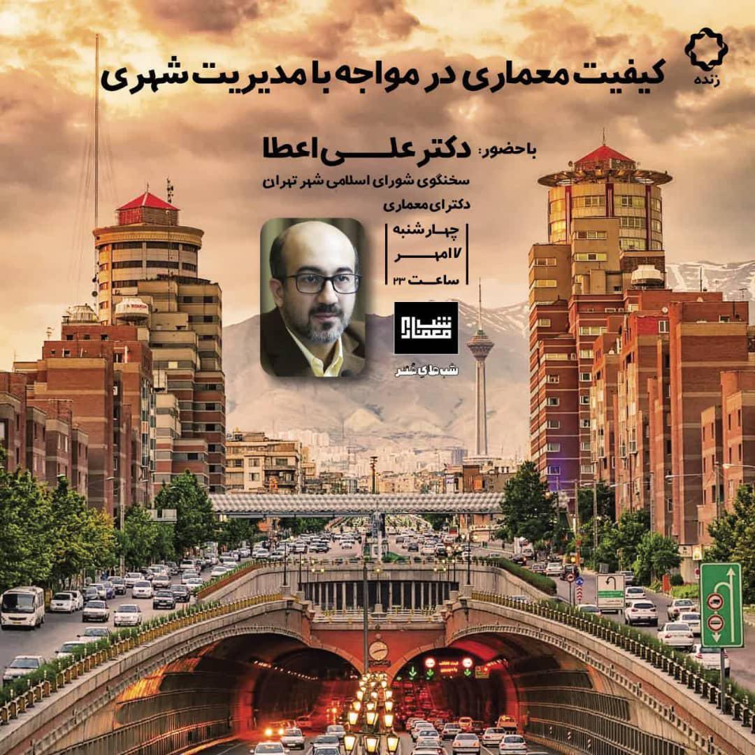 در برنامه چهارشنبه شب علي فروزانفر مجري برنامه به همراه علي اعطا، سخنگوي شوراي اسلامي شهر تهران به نقش سياستهاي شهري در تعيين کيفيت فضاي معماري ميپردازند؛ و پس از آن نگاهي خواهند داشت به اهميت معماري در فضاي شهري.