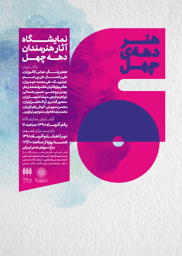 نمايشگاه «هنر دهه چهل» تا هشتم آذر از ساعت ۱۰ الي ۱۷ در نگارخانه پرديس باغ موزه هنر ايراني به نشاني؛ خيابان ولي عصر(عج)، بعد از پل پارک وي، خيابان شهيد فياضي، خيابان بوسني هرزگوين، خيابان دکتر حسابي داير خواهد بود.