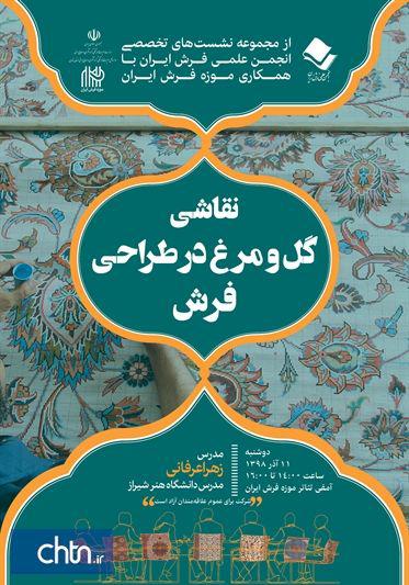 «نشست تخصصي نقاشي گل و مرغ در طراحي فرش با همکاري موزه فرش ايران و انجمن علمي فرش ايران، در موزه فرش برگزار خواهد شد.
