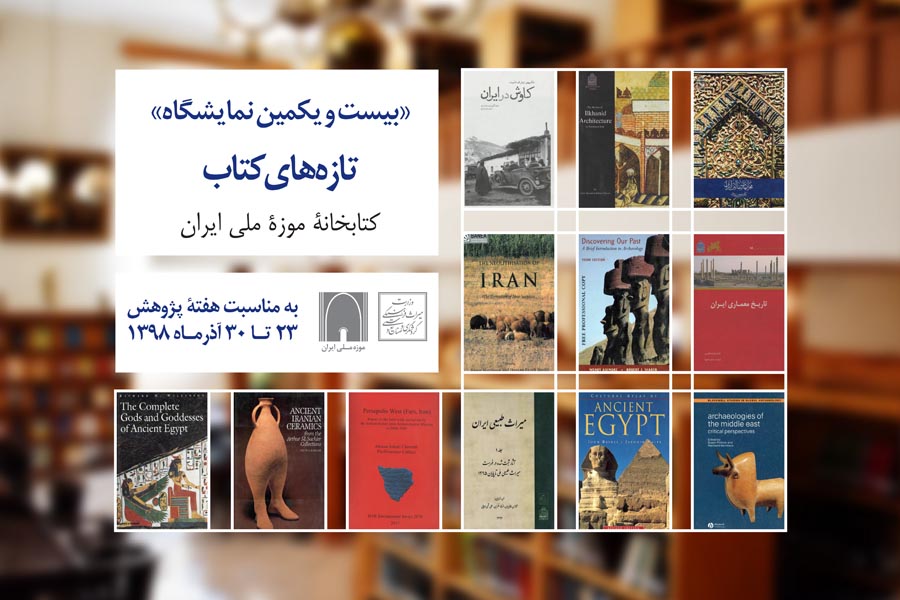 بيست ويکمين نمايشگاه تازه هاي کتابخانه موزه ملي ايران در پاسداشت هفته پژوهش با هدف معرفي و مروري بر تازه ترين کتب و نشريات تخصصي منتشر شده در زمينه باستان شناسي، تاريخ و هنر برگزار ميشود.
