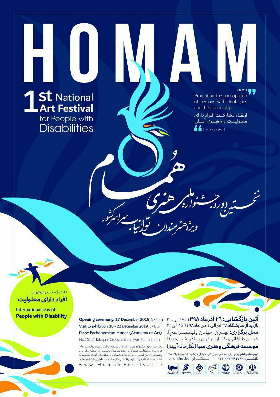 نخستين دوره جشنواره ملي هنري همام ويژه هنرمندان توانياب سراسر کشور، از روز سه شنبه 26 آذرماه از ساعت 17 تا 20 در موسسه صبا برپا مي شود.