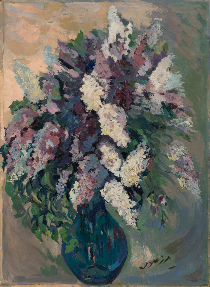 اثر گواش روي فيبر مکرمه قنبري با امضاي «مهر هنرمند» و ابعاد ۹۲×۱۰۷ سانتيمتر به قيمت 30 ميليون تومان به فروش رفت.