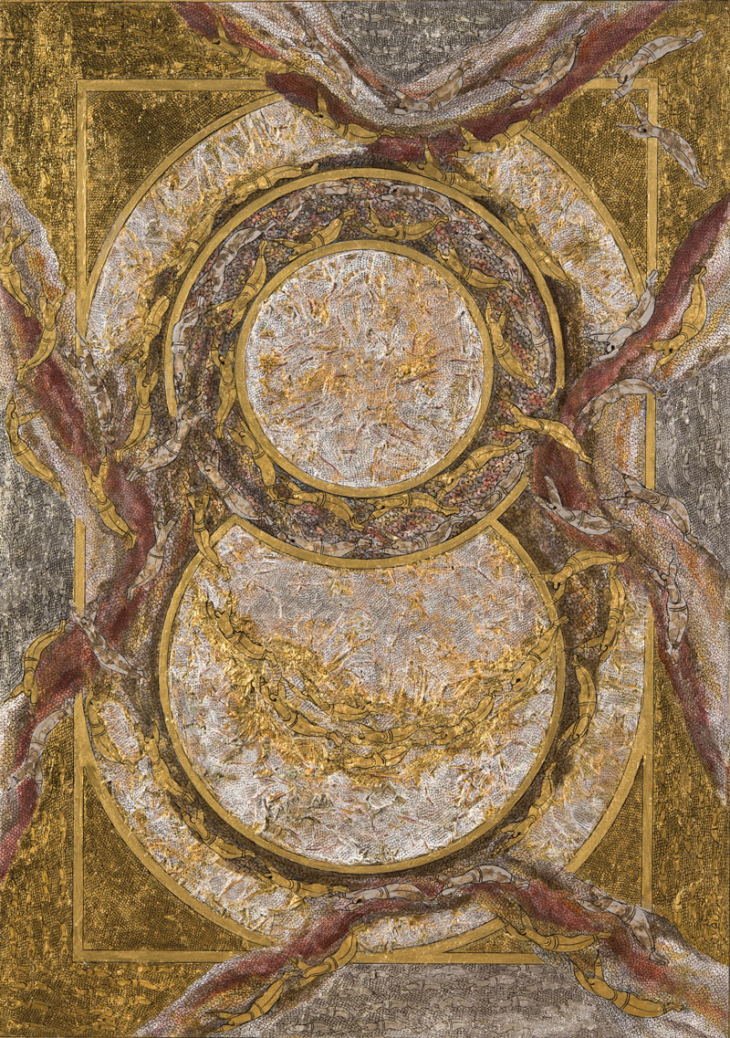 اثر ديگر حسين زندهرودي نيز با تکينيک رنگيزه گياهي و اکريليک روي بوم و ابعاد ۱۷۴×۲۱۲ سانتيمتر، متعلق به سال ۱۳۶۶ به قيمت 3 ميليارد و دويست تومان فروش رفت. اين اثر در مه 2019 در حراج ساتبيز پاريس ارايه شده است. اين اثر متاثر از داخل گنبد هاي ايراني تصوير شده است.
