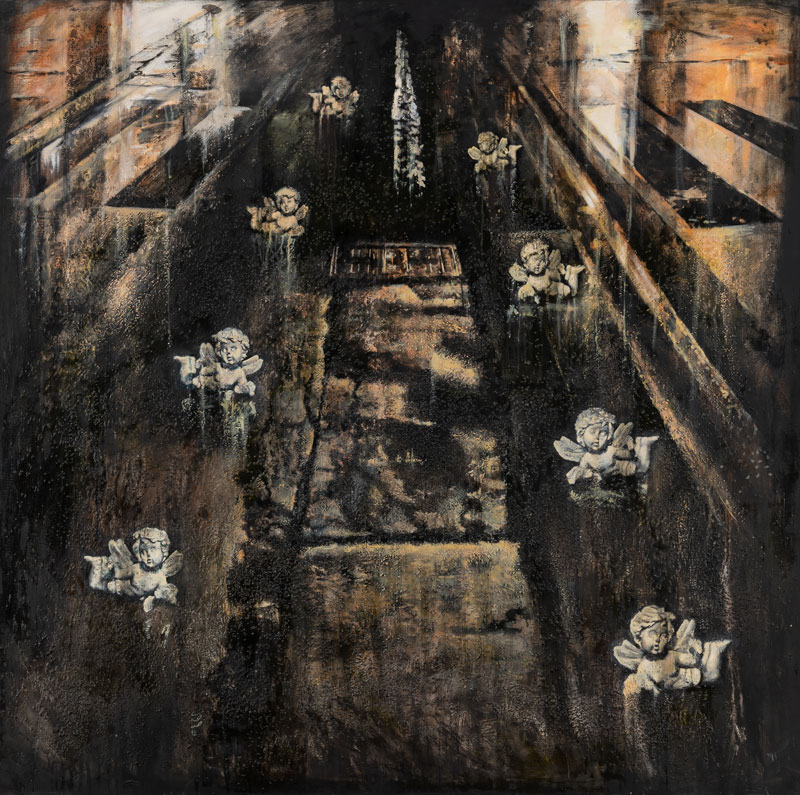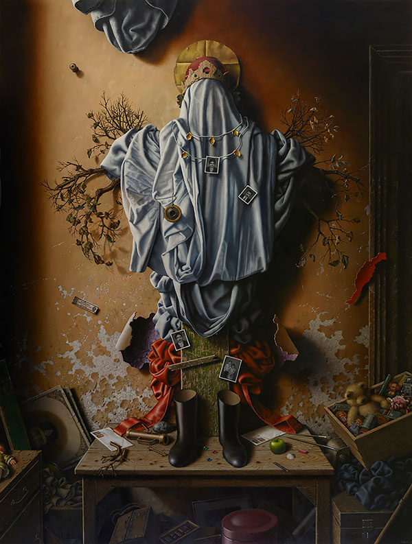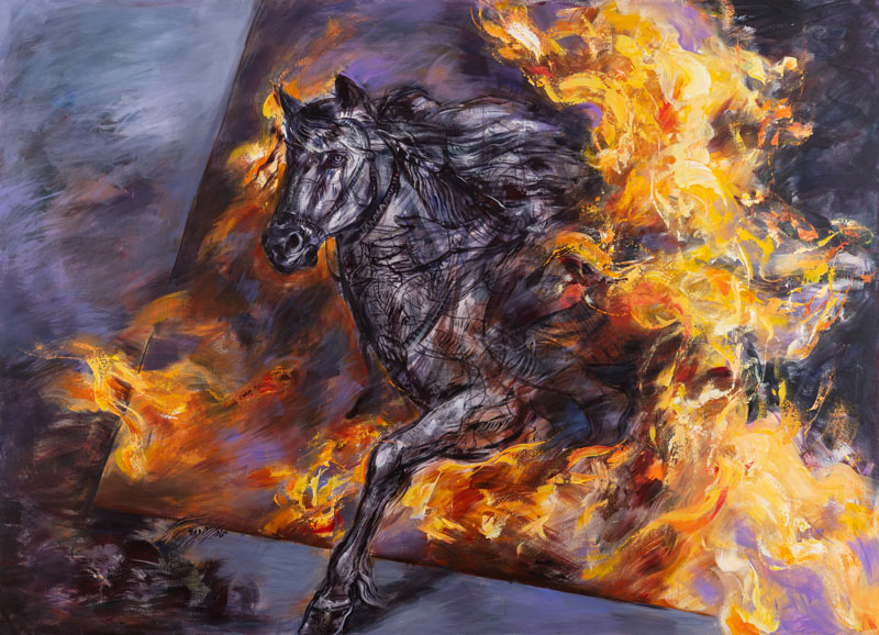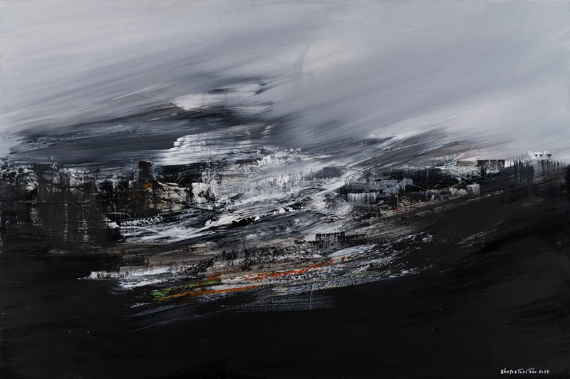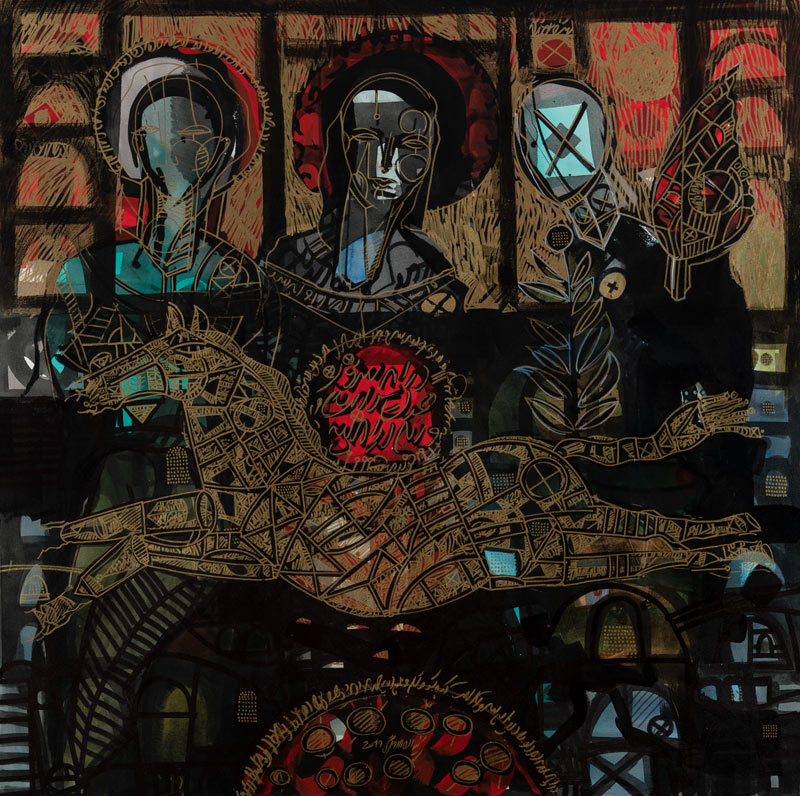 اثر مرتضي گودرزي با تکنيک ترکيب مواد روي بوم به روي صحنه آمد و به قيمت 36 ميليون تومان فروخته شد.