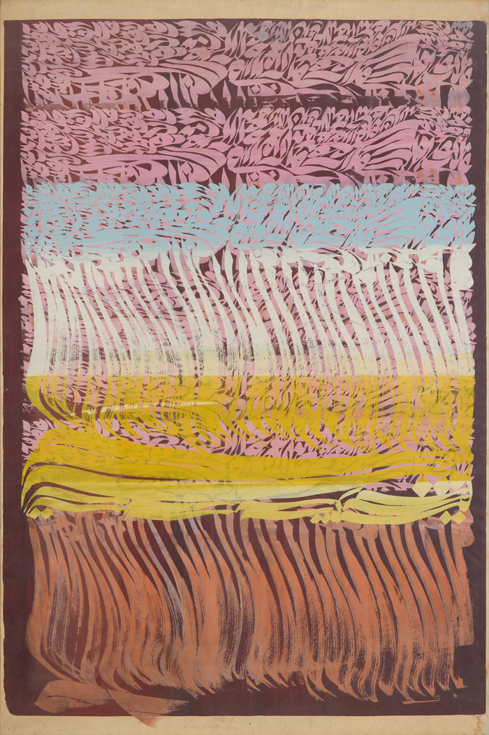 اثر بعدي به خسرو حسنزاده تعلق دارد. اثري بدون عنوان با تکنيک چاپ روي مقوا چسبانده شده روي بوم که فروخته نشد.