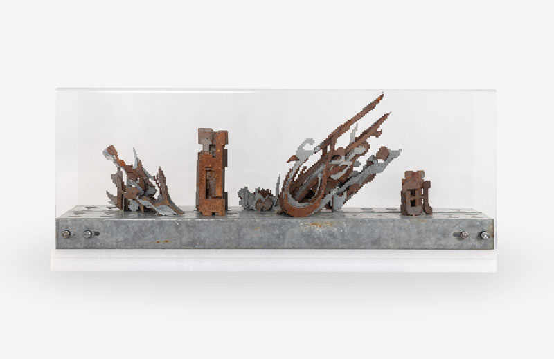 مجسمه بدون عنوان از مجموعه موزيسين ها، متعلق به ژازه تباتبايي با متريال فلز و ابعاد ۳۰×۶۵×۱۴۳ سانتيمتر به قيمت يک ميليارد و صد تومان به فروش رفت.