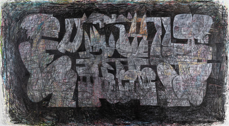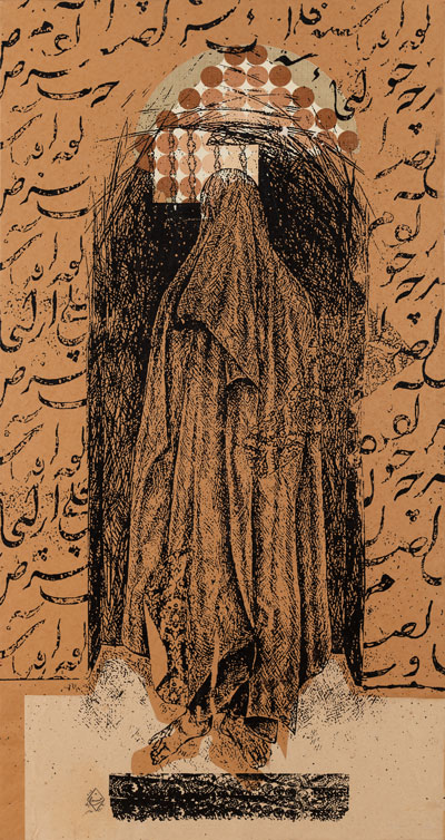 اثر ديگري از حسين زندهرودي، که اين اثر با گواهينامه آقاي حسين زندهرودي ارايه ميشود با تکنيک ترکيب مواد روي مقوا به روي صحنه آمد و به قيمت 280 ميليون تومان فروخته شد.