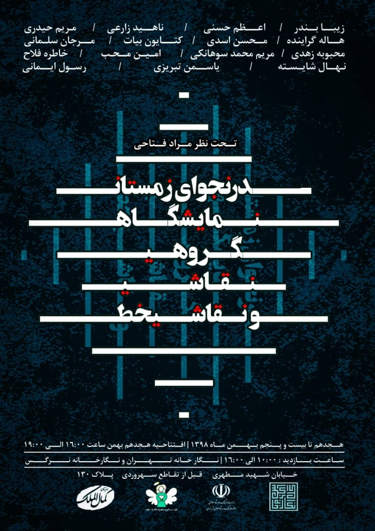 به گزارش گالري آنلاين به نقل از روابط عمومي اداره فرهنگ و ارشاد اسلامي شهرتهران مراسم افتتاحيه نمايشگاه گروهي نقاشي خط با عنوان در نجواي زمستان، 18 بهمن ماه با حضور مدعوين، اصحاب فرهنگ و هنر ، مسئولان فرهنگي شهر و دوستداران هنر از ساعت ۱۶ الي ۱۹ در نگارخانه تهران و نرگس اداره فرهنگ و ارشاد اسلامي شهرتهران برگزار ميشود.