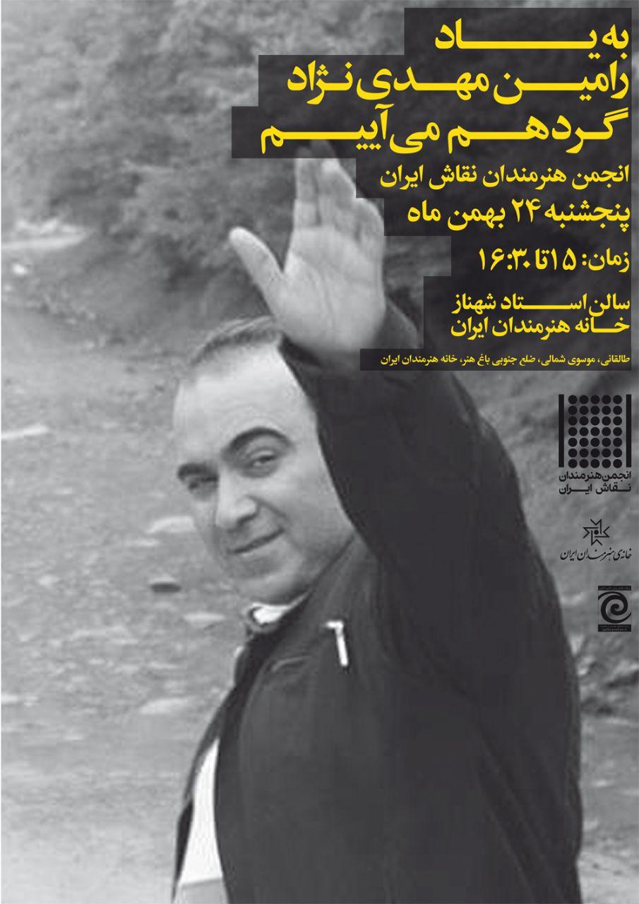 مراسم بزرگداشت رامين مهدي نژاد به همت انجمن هنرمندان نقاش ايران روز پنجشنبه 24 بهمن ماه در خانه هنرمندان ايران برگزار مي شود.