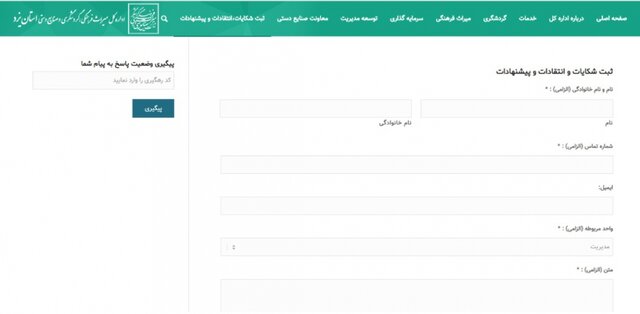 مسئول واحد حقوقي و املاک ميراث فرهنگي، گردشگري و صنايع دستي استان يزد از راهاندازي سامانه ثبت شکايات، انتقادات و پيشنهادات در سايت اداره کل ميراث فرهنگي يزد خبر داد.