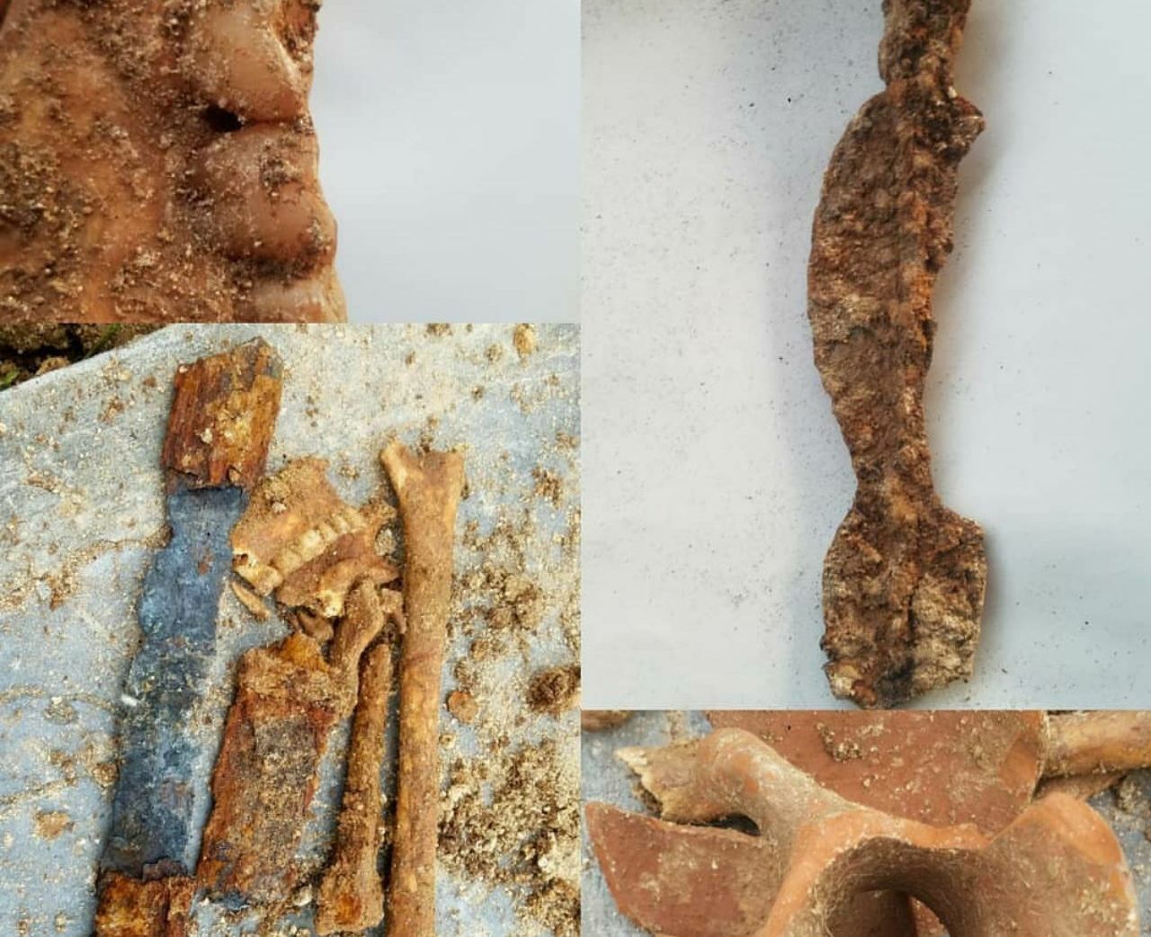 اين پژوهشگر مازندراني افزود: بقاياي يک اسکلت انساني، بقاياي يک ظرف سفالي شکسته، بقاياي يک شمشير آهني و يک تيردان و يک قطعه شي آهني مربوط به ابزار جنگي کشف شد.