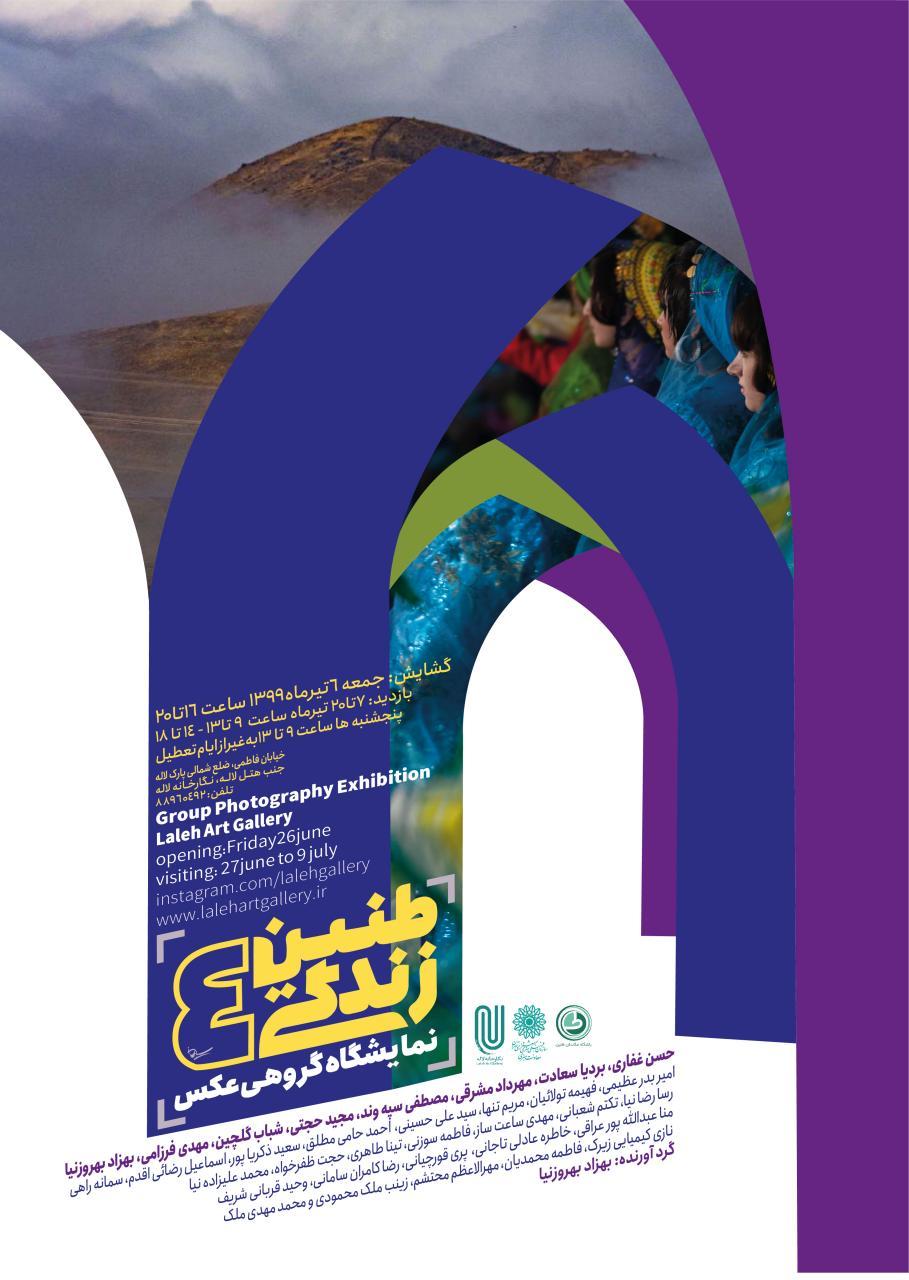 چهارمين نمايشگاه ساليانه گروهي عکس طنين زندگي با تعداد 46 قطعه عکس از 32 عکاس با موضوع: طبيعت و منظره، قوميت نگاري و مناظر شهري به نمايش گذاشته خواهد شد.