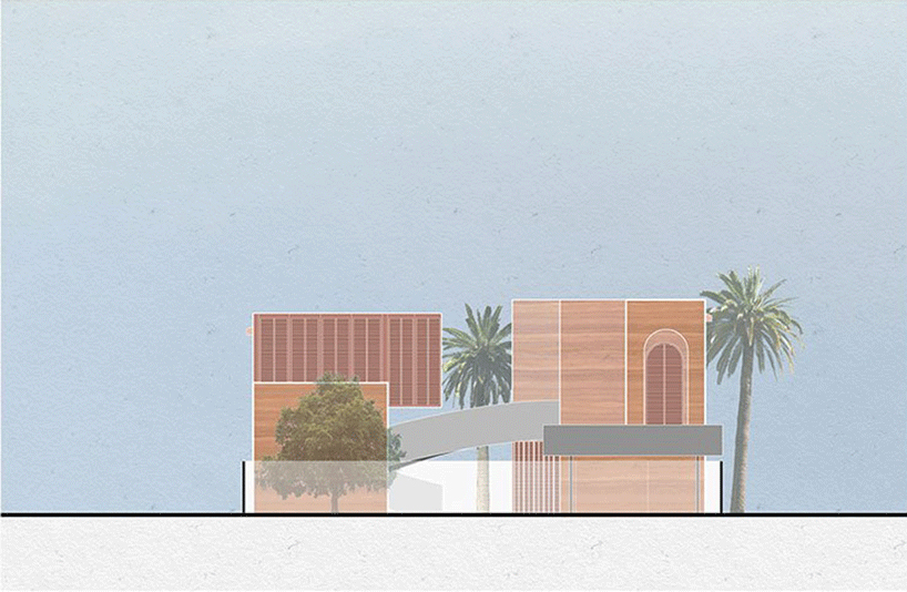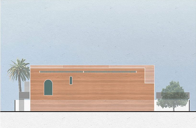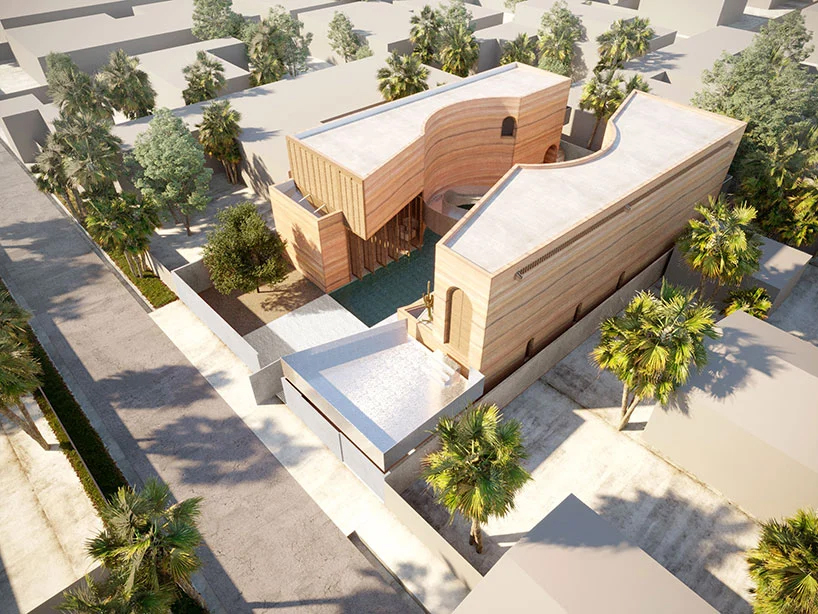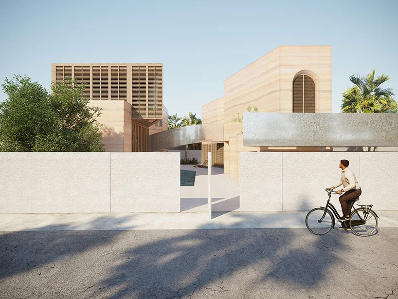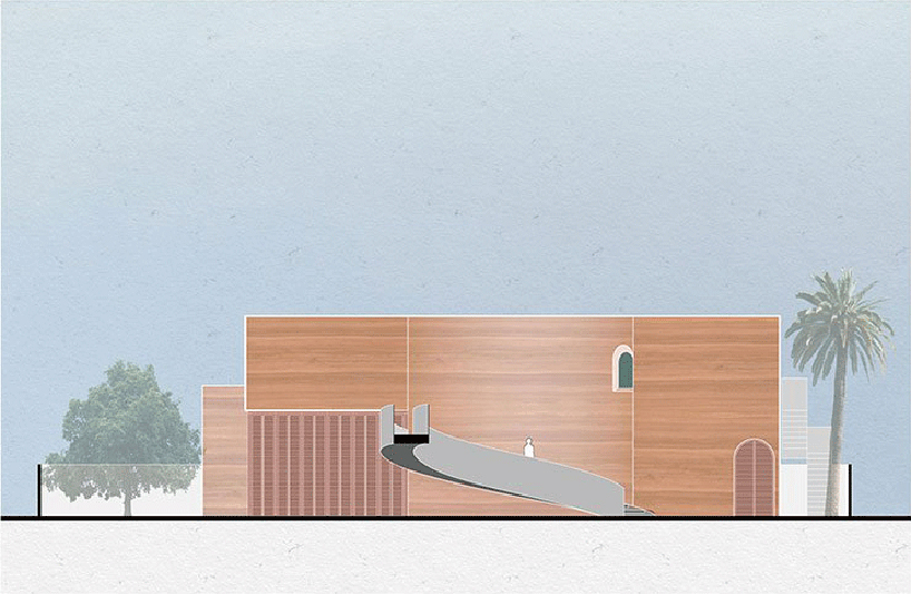 در وسط حياط، پلکاني مارپيچ قرار دارد که از استخر به گالري عمومي منتهي مي شود. با پيوند و در هم آميختن برنامه هاي اجتماعي و شخصي، خانه به مکاني جديد و بيش از صرفاً يک منزل مسکوني تبديل مي شود. ديوارهاي خاکي، پله ها و نرده هاي فولادي گالوانيزه با يکديگر در آميخته تا آن جا را به مکاني بي عيب و نقص و باصلابت تبديل کنند؛ مکاني که همچنان استوار، ريشه دوانده در خاک و آزاد است.