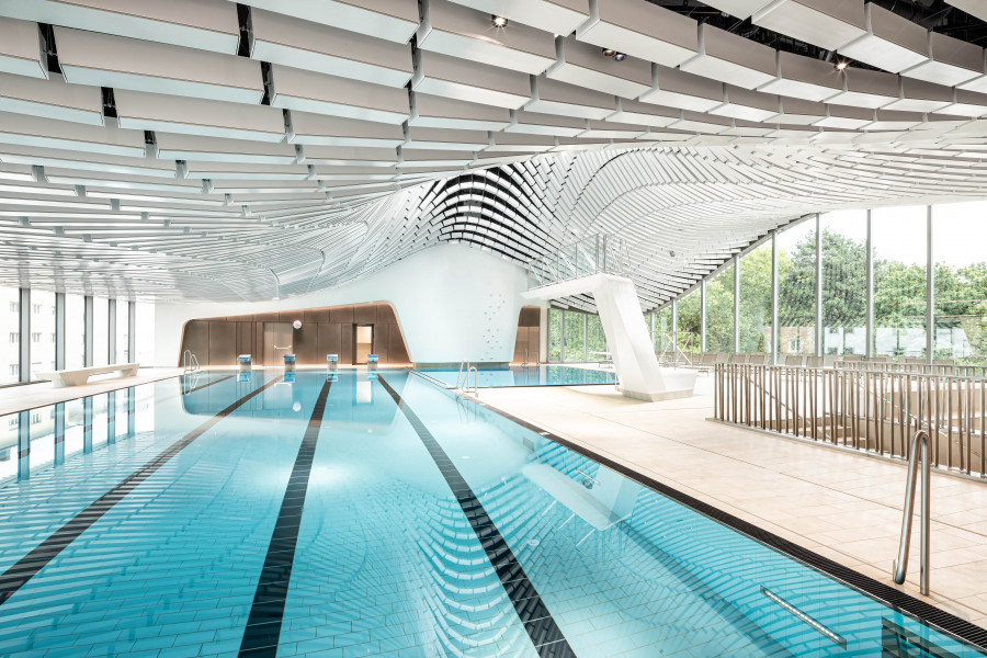 به گزارش گالري آنلاين، استخر هاي شنا در مرکز اين مجموعه ها ساخته مي شوند. اين سازه ها ايده ها و طرح هايي از نورپردازي و فضا سازي هزار ساله از "حمام بزرگ" پاکستان در منطقه موهنجو-دارو و مدرسه کشتي (ورزشگاه) palaestras (پالاستراس) يونان باستان گرفته تا مجموعه هاي شنا در عصر معاصر را به نمايش مي گذارد.