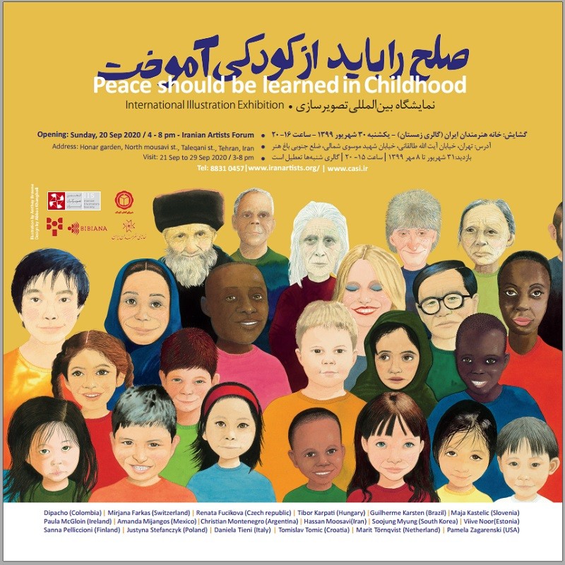 انجمن تصويرگران ايران و شوراي کتاب کودک با همکاري دوسالانه تصويرگري براتيسلاوا، دومين دوره نمايشگاه بينالمللي «صلح را بايد از کودکي آموخت» را با نمايش آثاري از تصويرگران منتخب 19 کشور جهان در خانه هنرمندان ايران (گالري زمستان) برگزار مي کنند.