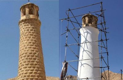 وي بيان کرد: سطوح جداره خارجي منار طي قريب به ۳۰ سال گذشته با مصالح اندود سيمان به شکلي نامتعارف و ناهمگون با مصالح بدوي و حائز اصالت اثر، بهشيوهاي که در نگاه اول شباهت به سنگ داشته باشد اجرا شد که هم به لحاظ تکنيک اجرا و هم از منظر مصالح به کار رفته، فاقد معيارهاي هويت تاريخي و اصالت منار بود.