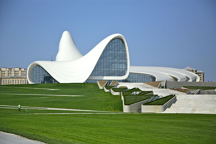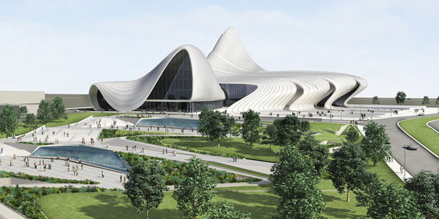 اوج قدرت، لطافت، انعطاف و ريزبيني زنانه را ميتوان در طراحي مرکز فرهنگي حيدر علي‌اُف باکو توسط بانوي معمار عراقي "زاها حديد" مشاهده کرد.