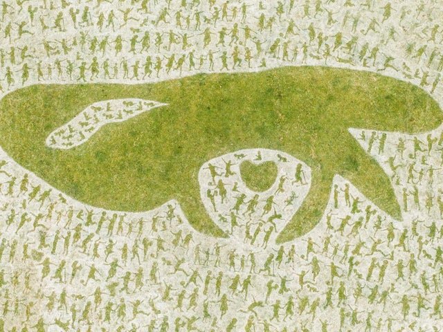 به گزارش گالري آنلاين به نقل از ايسنا، گروه هنري با نام «شن از نگاه تو» اثر هنري در زمينهاي اطراف «يورکشاير غربي» واقع در انگلستان خلق کردهاند که ۶هزار کودک در ابعاد واقعي را حين بازي به تصوير ميکشد. اين اثر از نماي بالا چهره يک کودک را به وجود ميآورد.