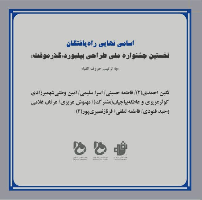 فيناليستهاي نهايي نخستين جشنواره ملي طراحي بيلبورد "گذر موقت" مشخص شدند.