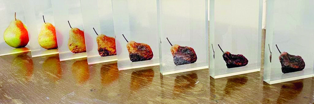 آيا جهان رو به زوال ميرود؟ چرا اين روزها كانسپت زوال در آثار هنرمندان دنيا بسيار است؟ نميشود روي زمين زندگي كرد و به تخريبهايي كه انسان روي آن انجام داده است، بياعتنا بود و به اين همه نابرابري، خشونت و ناپايداري عكسالعمل نشان نداد. پاندمي كرونا هم كه روحي از عدم اطمينان در دنيا تزريق كرده است. همه اينها ذهن هنرمند را به سمت زوال پيش ميبرد. مينا نادري با مديوم نقاشي و چاپ، كامبيز صفاري با مديوم ويديو مپينگ و روشنك صدر با مديوم عكس و اجرا، هنرمندان نمايشگاهي هستند كه در جستوجوي مظاهر زوال است. عكسهاي خانم صدر از اشياي رها شده براي اچينگ به خانم نادري سپرده ميشود و تصاوير اين چاپها به عنوان مواد لازم براي ساخت ويديو مپينگ دراختيار كامبيز صفاري قرار ميگيرد. علاوه بر اين نقاشيهاي خانم نادري هم در معرض نمايش است. ما در اين نمايشگاه با زوال روبهرو ميشويم اما نه براي نااميدي كه براي تلنگر خوردن. مثلا وقتي روشنك صدر از ماده ترانسپرانت پلكسي براي ديده شدن عكس ميوههاي پلاسيده استفاده ميكند قصدش تلنگر است نه تزريق نااميدي. چون پلكسي در ذات خود مفاهيم تبليغ و شادي و روز را دارد. اما فارغ از اين نقد مفسرانه در سويهاي ديگر و در نقدي فرماليستي، تقابل پلكسي با ميوه پلاسيده ما را به يك چالش زيباييشناسانه ميكشاند و تضادي كه در روح ماده پلكسي با روح يك ميوه پلاسيده وجود دارد بسيار كنشبرانگيز ميشود و فعاليت زيباييشناسانه ايجاد ميكند.اما نقاشيهاي مينا نادري هم در برابر نااميدي تسليم نميشوند. آنها حجمي از فراموشي را با خود حمل ميكنند.سوررئاليسم حاكم بر نقاشيهاي نادري فرار از واقعيت نيست بلكه رجوع به واقعيت فراموشي است. انسان در حال فراموشي همه چيز است و آلزايمر تنها صورت كودكانه اين فراموشي است. وجود شيئي مانند صندلي يا كاناپه در آثار اين هنرمندان بار بزرگي از روزمرّگي، شادي، تنهايي، خستگي، آسودگي و… را كه همواره همراه اين اشيا است، بر دوش اين آثار ميگذارد. حضور صندلي در فضاهاي انتزاعي نقاشيهاي نادري خوشبختانه بيشتر از توجيههاي مخاطبپسند، پرتابهايي موثر به دنيايي غيرقابل تفسير و غيرقابل بيان دارد، همان چيزي كه به قول رزاليند كراوس منتقد برجسته معاصر، اراده به سكوت در هنر مدرن و پرهيز از مداخله كلام را تشديد ميكند. نقاش در آبستراكسيوني – خلاصهنگاري- هوشمندانه اشيا را با خطوط محيطي بازنمايي كرده و با اين تكنيك يا خردمندي ناخودآگاه، اشياي واقعي را در فضاي انتزاعي نقاشي تثبيت كرده است. كامبيز صفاري در ويديو مپينگ كه از تصاوير چاپ ساخته شده است تصاوير را در تدويني ماورايي از آسمان نازل ميكند. گويا اين تصاوير – خصوصا در كادرهاي بسته – رسالت اضمحلال دارند؛ اضمحلال فكر مخاطب براي يك بازسازي جديد. وقتي بيان تصويري بليغ باشد نيازي به گفتار يا متن روي تصاوير نداريم. توجه به فضاي منفي و انتخاب رنگ عميق و با نفوذ سياه براي اين فضا در بخشي از ويديو مويد اين نكته است كه گاهي فضاي زمينه ميتواند موثرتر از فضاي اصلي عمل كند. صفاري نشان ميدهد ويديو مپينگ فقط رسانهاي براي تبليغهاي ديواري نيست بلكه رسانهاي قوي در هنر است. و اما در استيتمنتي كه به قلم كيوان خليلنژاد براي نمايشگاه «زوال، ديالكتيك استمرار» نوشته شده است به زيبايي به كانسپت زوال جاري در زندگي انسان معاصر اشاره ميشود.