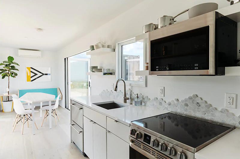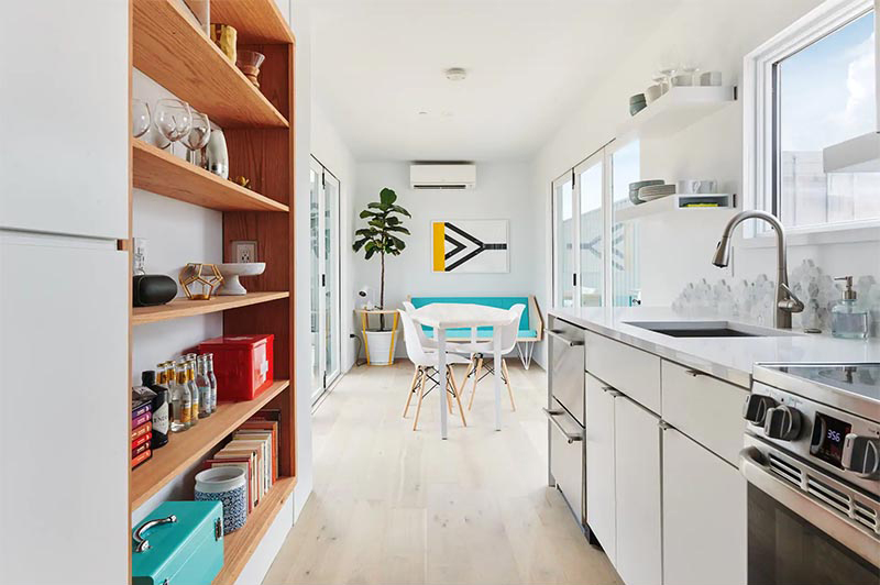 به گزارش گالري آنلاين، اين خانه از سه کانتينر حمل و نقل در اندازه هاي مختلف تشکيل شده است. اتاق اول شامل اتاق نشيمن، آشپزخانه و اتاق خواب اصلي با حمام است. اتاق دوم شامل يک اتاق خواب ميهمان با حمام است و سومين اتاق در حال حاضر براي ذخيره سازي استفاده مي شود، اما در آينده مي تواند به يک اتاق خواب ديگر يا يک دفتر کار تبديل شود.
